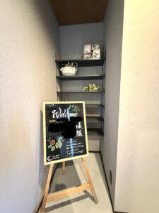 イラストとメッセージが書かれたブラックボードとともにお出迎えいたします。